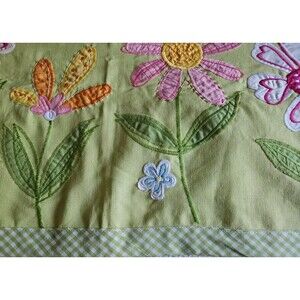 2 Pottery Barn Kids Green Gingham Daisy Garden Valances Embroidered Whimsical