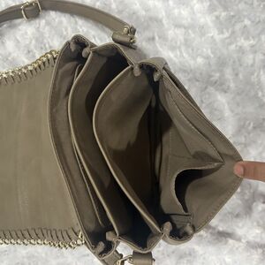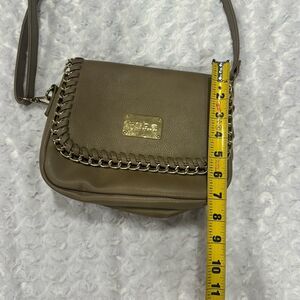 This beautiful bebe Los Angeles shoulder bag is the perfect accessory for any occasion. With its sleek design and stylish beige exterior, it is sure to turn heads. The bag features a magnetic closure and gold hardware, adding a touch of elegance to its overall look.