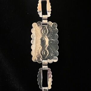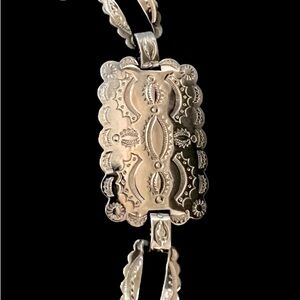 This unique and timeless vintage handmade Navajo silver belt or necklace is 28" silver 1 1/4 wide. Please look at the photos for more details.