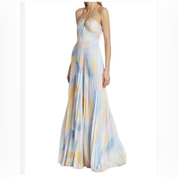 ML Monique Lhuillier Satin Blue Charmeuse Pleated maxi dress