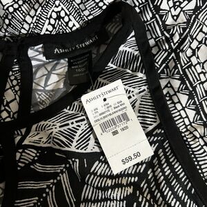 NWT ASHLEY STEWART Women’s Black White Geometric Floral Maxi Dress Size 18/20