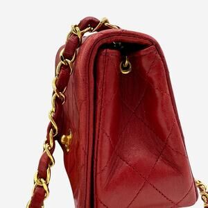 Vintage Red Chanel Lambskin Leather Small Single Flap with 24k gold-plated HW