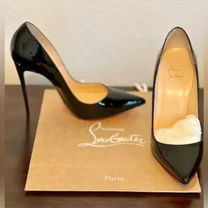 These stunning, authentic Christian Louboutin patent heels are in pristine, mint condition and have never been worn outside. There are absolutely no scuffs or damages. Unfortunately, just three months after purchasing them, I suffered an inversion hairline fracture to my right ankle. Despite physical therapy, I'm unable to wear heels over 4 inches. Sadly, I need to finally let them go since they are just tucked away in my closet.