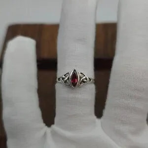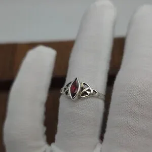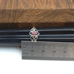 Size 8 925 Sterling Silver Simple Red Glass Celtic Ring
