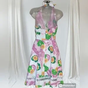 Lily Pulitzer halter dress. Lined. Size 2 Alligator and lily pad print. A-line skirt. Perfect for summer! There is a small spot ( see last pic).