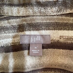 J. Jill 100% Silk Neutral Striped Pattern Long Sleeve Shirt Dress Women Size M