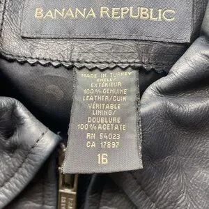 Vintage banana Republic Leather Jacket. From the fall collection in 2002. Size 16 women’s. 100% genuine leather. Very good condition aside from a few tears in the lining! :)