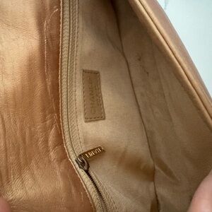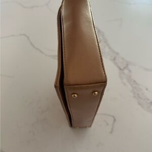 Leather,gold/ beige , handle bag, magnetic button closing, one addition zipper pocket, cloth interior