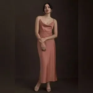 Anthropologie BHLDN Cali Satin Cowl-Neck Midi Slip Dress NWT