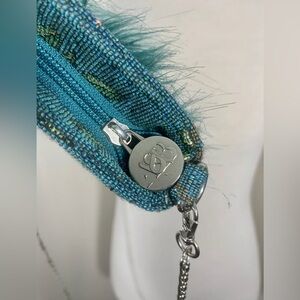 America & Beyond Faux Fur Tapestry Convertible Clutch Teal Cross Body Purse.
