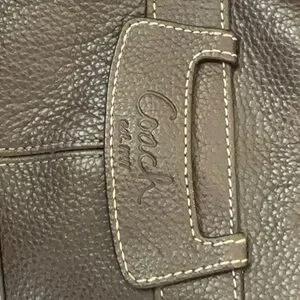 Brown Coach handbag, leather in great condition. Inside is a pretty lavender with no stains.