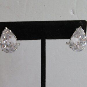 Pear Shape Faceted Crystal Rhinestone Stud Lever Back Earrings Silver Tone