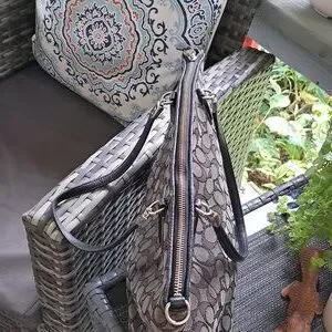 Coach F36220 Kelsey Black Leather Trim w Gray "C" Signature Shoulder