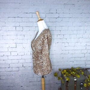 Tesori Silk Jersey Knit Surplice Top Brown Small