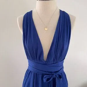 Lulus Lolinda Halter Convertible Jumpsuit Size Medium Blue Gauze