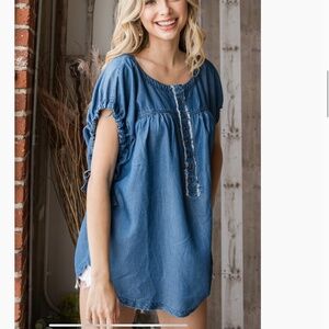 ☀️Veveret “ Henderson “ Veveret Cap Sleeve Front Pleated Tencel Top LAST ONE