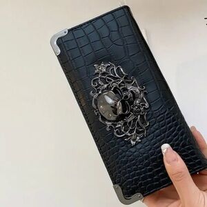 ๐ Crocodile Pattern Wallet, Faux Leather Card Holder Skull Decor, Unique Clutch