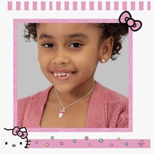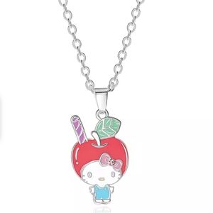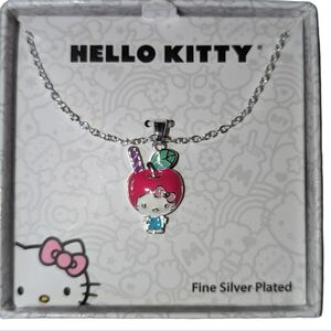 Adorable Hello Kitty necklace by Sanrio. Hello Kitty is dressed as a yummy sorbet. The Apple Sorbet necklace is 15" with 2" ext. Comes in a Hello Kitty box that is perfect for gift giving. Very cute! 🩷🩷🩷🩷. Silver plate and enamel.