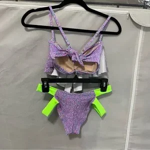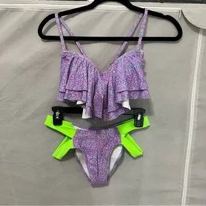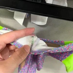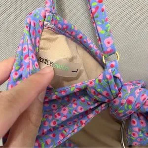 I wear a 32/34 D/dd and the top is just small for my liking- it fit but just didn’t love the fit for me. It’s so cute! I love the floral pattern with the neon. Bottom fit great and is a little cheeky- I would have kept the bottoms if I had a matching top.