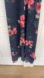 Beautiful flowy and flattering dress with elastic waist and zipper back. Dress is high/low style and fits TTS but is very forgiving. The neck line dips low, so the two times I wore it I used a safety pin to close up the chest. There are tiny pin holes as pictured where I did that, you can see only when up close. Dress is navy and flowers are pink.