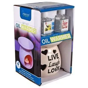 Give the gift of a great smelling home with these Interiors by Design Oil Warmer Gift Sets. Each set includes an oil warmer, a tealight candle, and two different fragrance oils. The printed messages on each oil warmer promote hope and positivity.