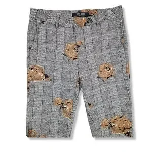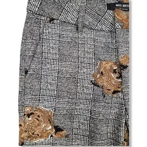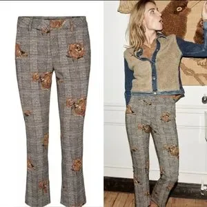 Mos Mosh Ivana shannon Checkered Pants Crop Dress Trousers Floral Appliqué 27