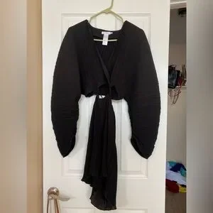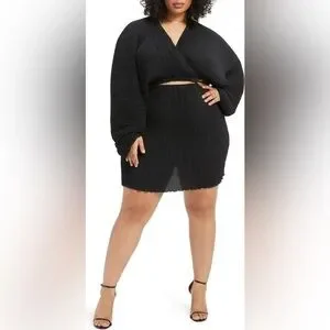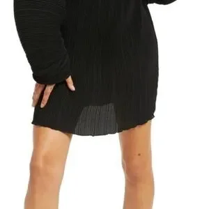 Sculpted long sleeves artfully frame this flirty cutout minidress made with plissé for touchably chic texture.
