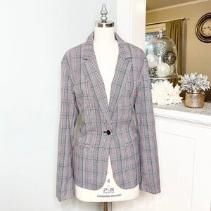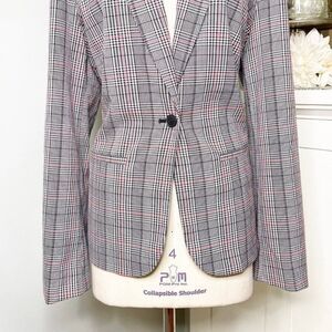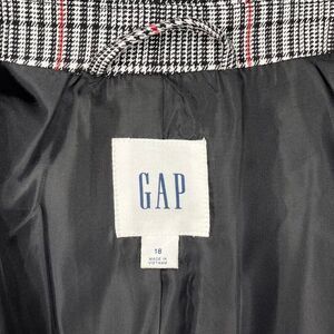 Gap Black Plaid Grid Academy Blazer Jacket. Perfect winter colors-black, gray and red plaid. Two pockets in front. Single button closure. New without tags. Size 18.