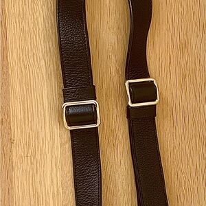 The Sydney is a backpack that can also be converted into a top-handle handbag. Carries a tablet, folders, paper and more comfortably. Black leather with gold twist closure, gold details, two straps that can be clipped on to be a backpack, or removed to be a structured handbag. Flat bottom so it stands up when set down. Owner’s initials engraved in gold on one strap. Lightly used, excellent condition, no scratches or tears in interior or exterior. Price as is; no offers accepted.
