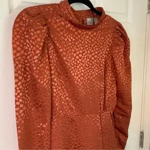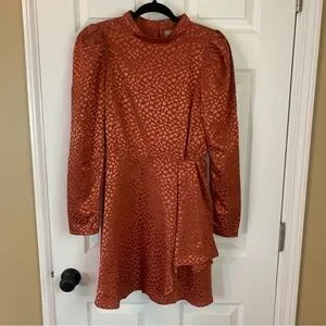 ASOS Jacquard Rust Puff Sleeve Mini Dress, size 6