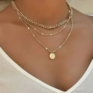 Adorable three layer gold necklace with circle pendant. Adjustable. Brand new.