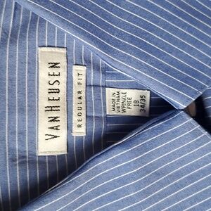 Upgrade your dress shirt collection with this set of two stylish Van Heusen dress shirts. Perfect for any occasion, these shirts combine classic designs with comfortable regular fit. Both shirts are in size 18 34/35 and offer the quality and elegance that Van Heusen is known for.