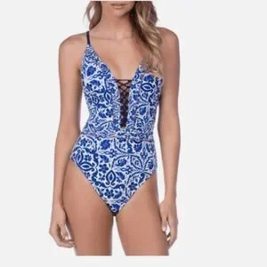 Nanette Lepore Talavera Lace-Up One-Piece Women's Swimsuit NL8CM10 XS,M NWT