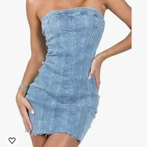 Fronage Women's Sexy Jeans Denim Strapless Dresses Bodycon Corset Tube Mini Dress