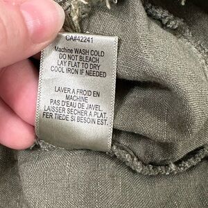*see photos above. One button missing. But you could use the button at the very top under collar and move it down to where cotton is missing if you do not plan on buttoning it all the way to the neck
