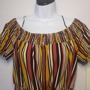 Women's Multi Color, Stripe, Off Shoulder, Ruffled Sleeves with waist tie Blouse SZ M