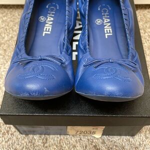Chanel Classic Captoe Stretch Scrunch Ballerina Ballet Flats Blue Size 38