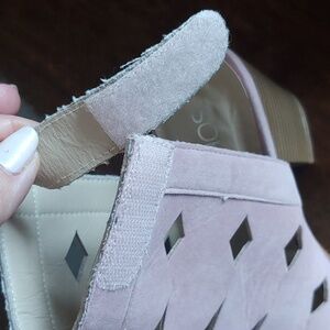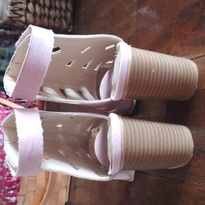 cute sandal..3 1/2 inch block heel..velcro closure..pale pink color..gently worn..any imperfections reflected in price