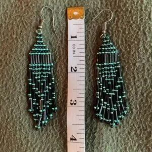 Handmade Native American beaded earrings. Turquoise and black. Approx 3” long
