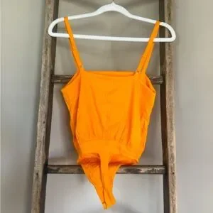Free People NWT Marissa Ribbed Bodysuit Tangerine Orange Size XS