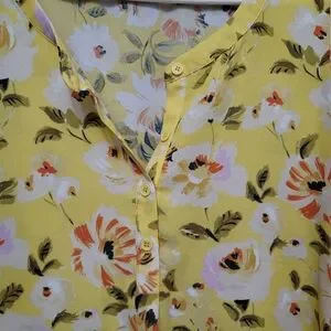 Spense. Polyester. Yellow. Floral. Sleeveless. Button. Measurements pictured. Size 1XL