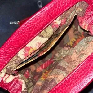 Stunning red color, beautiful silver embellishments, hand strap & shoulder strap. Beautiful fabric inside. Excellent Condition, New, Never used, See pictures for size.