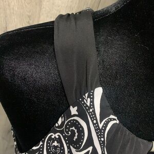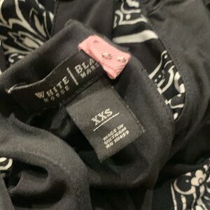 This beautiful dress is part of a beach summer casual collection from White House Black Market. It is a gorgeous knee length A-Line dress. It has a a stunning high round neckline. Fabric is black with a white geometric design on both sides. It is about 35" from shoulder to hemline. Dress has been professionally cleaned. Piece is free of rips, holes, tears & stains. It has been in storage in a non-smoking home. If you have any questions please message me. PLEASE REVIEW PICTURES.