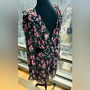 AMUR X REVOLVE NWOT Sleeveless V Neck Pleat Floral Romper Size 8
