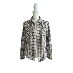 Allsaints Spitalfields Parson Button Down Plaid Women Shirt Size 8 Western Rodeo