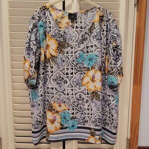 JM Collection Tropicallia Tile Blouse