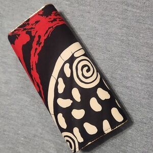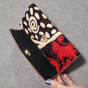 Made w/ Quality Fabric, Printed w/ an Abstract Pattern of Rich Off-Black, Bright Red & Off-White Cream, w/ Sheeny Gold-Toned Trim Detailing :)