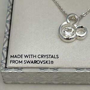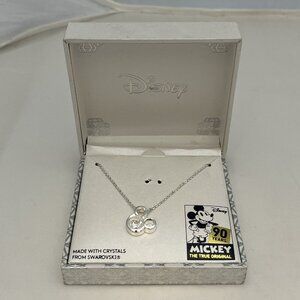 Disney 90 Years Mickey Mouse Silver Plated Swarovski Crystal 18 Inch Necklace