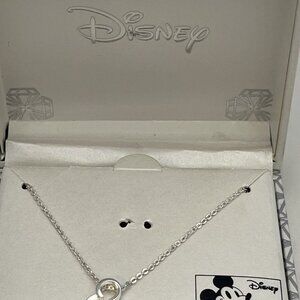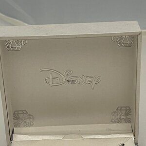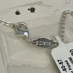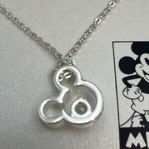 This is a Mickey 90 Years commemorative silver plated necklace. I believe this is from 2018 and it’s a silver Mickey ears pendant with a crystal in the center made from Swarovski. 18 inches long and it has a Kohl’s tag. Really lovely Disney necklace.