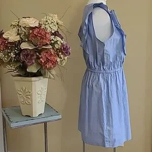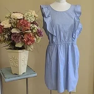 NEW Sleeveless Dress Denim Cotton Blue Penifore Style Ruffle Elastic Waist XL